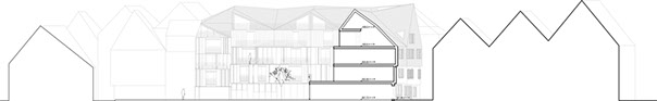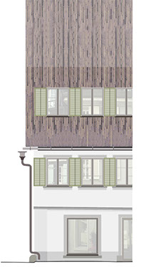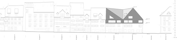 Das Projekt interpretiert den nördlichen Abschluss der Bebauung, Fassadenecke (Seestrasse 99/Kirchgasse 2) mit einer Giebelfassade, die als frontaler Abschluss direkt in Verbindung mit dem Kirchplatz und dem Quai des Untersees steht.
