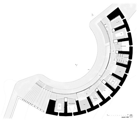 The synergy of the proposal happens along the perimetrical path, which is the leading thread of the project. It presents both: the inside space of the island and the exterior immensity of the sea.