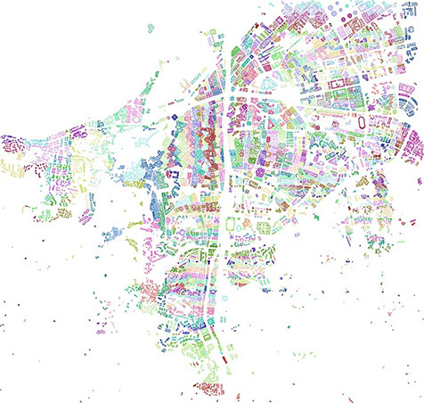The concept of the "Dissolved City" introduces an innovative approach to urban mapping that reimagines the function and significance of buildings within the urban environment. By employing a color-coding system, this map dissolves traditional programmatic functions, fostering a new perspective on the potential uses and relationships of fixed building typologies. This paradigm shift emphasizes the reusability of buildings and their components, transcending conventional boundaries from industrial to residential, infrastructure to rural, and private to public domains.