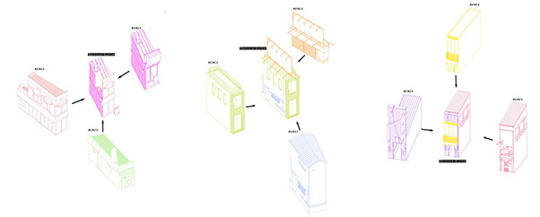The proposed access is through the adjacent buildings. Existing homes are extended in order to provide an alternative economy to maintain the existing family structure. Immaterial exchange can also happen sharing experiences in between the new inhabitants.