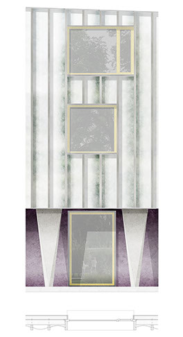 Die Dach- und Fassadenverkleidung wird einheitlich mit einer Metallverkleidung aus Aluminium ausgebildet, in der sich Himmel und Natur diffus spiegeln. Die leichte Metallfassade schwebt darüber.