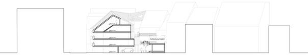 Das Projekt interpretiert den nördlichen Abschluss der Bebauung, Fassadenecke (Seestrasse 99/Kirchgasse 2) mit einer Giebelfassade, die als frontaler Abschluss direkt in Verbindung mit dem Kirchplatz und dem Quai des Untersees steht.