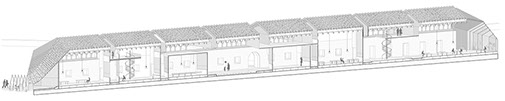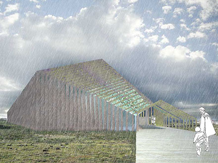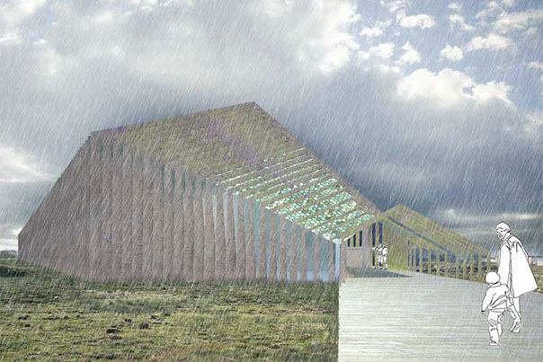 The heavy existing fortifications are extended with light structures that package and protect the inside from the strong air streams.