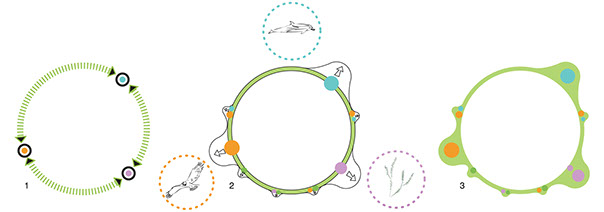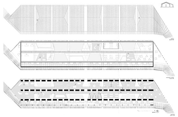 The synergy of the proposal happens along the perimetrical path, which is the leading thread of the project. It presents both: the inside space of the island and the exterior immensity of the sea.