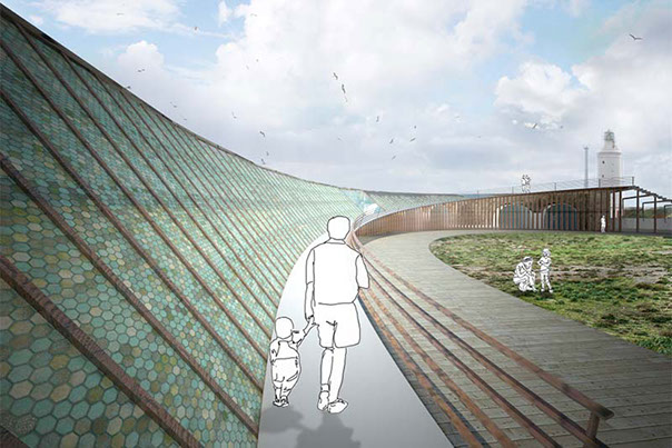 A new skin of parametric timber trusses are added in its land-inside concave facade. They support a pathway that leads to the deck. On the deck there is a garden; a public balcony with views over the Street of Gibraltar to Africa.