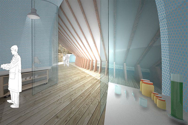 The new program of these buildings are research labs and the divulgation of natural environments.